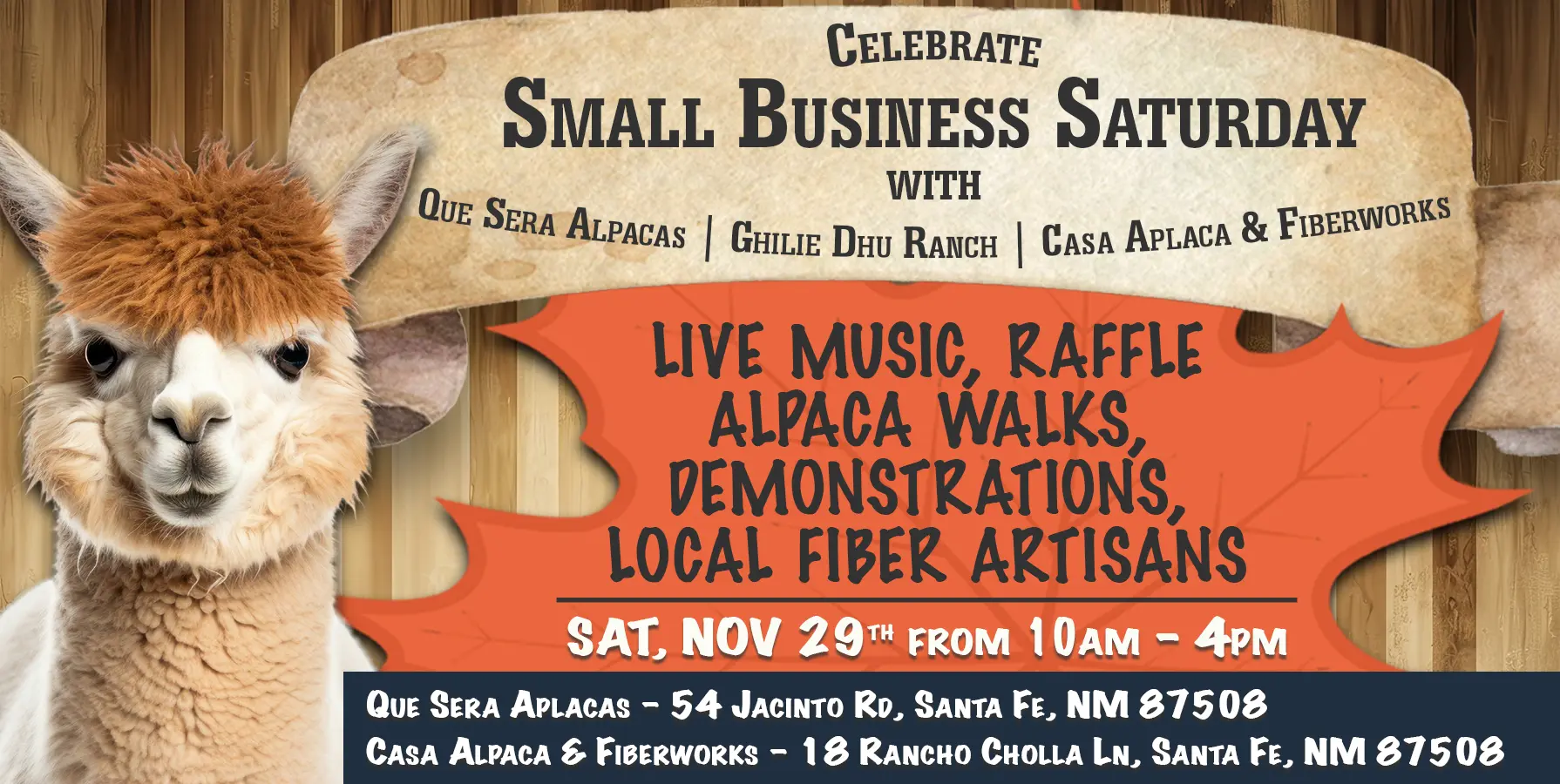 Join us for the second Small Business Saturday Celebration, set to be a memorable event for the entire family! Sponsored by Que Sera Alpacas, Ghilie Dhu Ranch, Casa Alpaca and Fiberworks and Hutton Broadcasting, this Small Business Saturday gathering brings together local fiber artisans, demonstrations, live music from local singer song writer Tim Styles and fun alpaca-themed activities for a true celebration of community and local craftsmanship. Join us on November 29th from 10 AM to 4 PM at Que Sera Alpacas, offering unique experiences that make … Read More