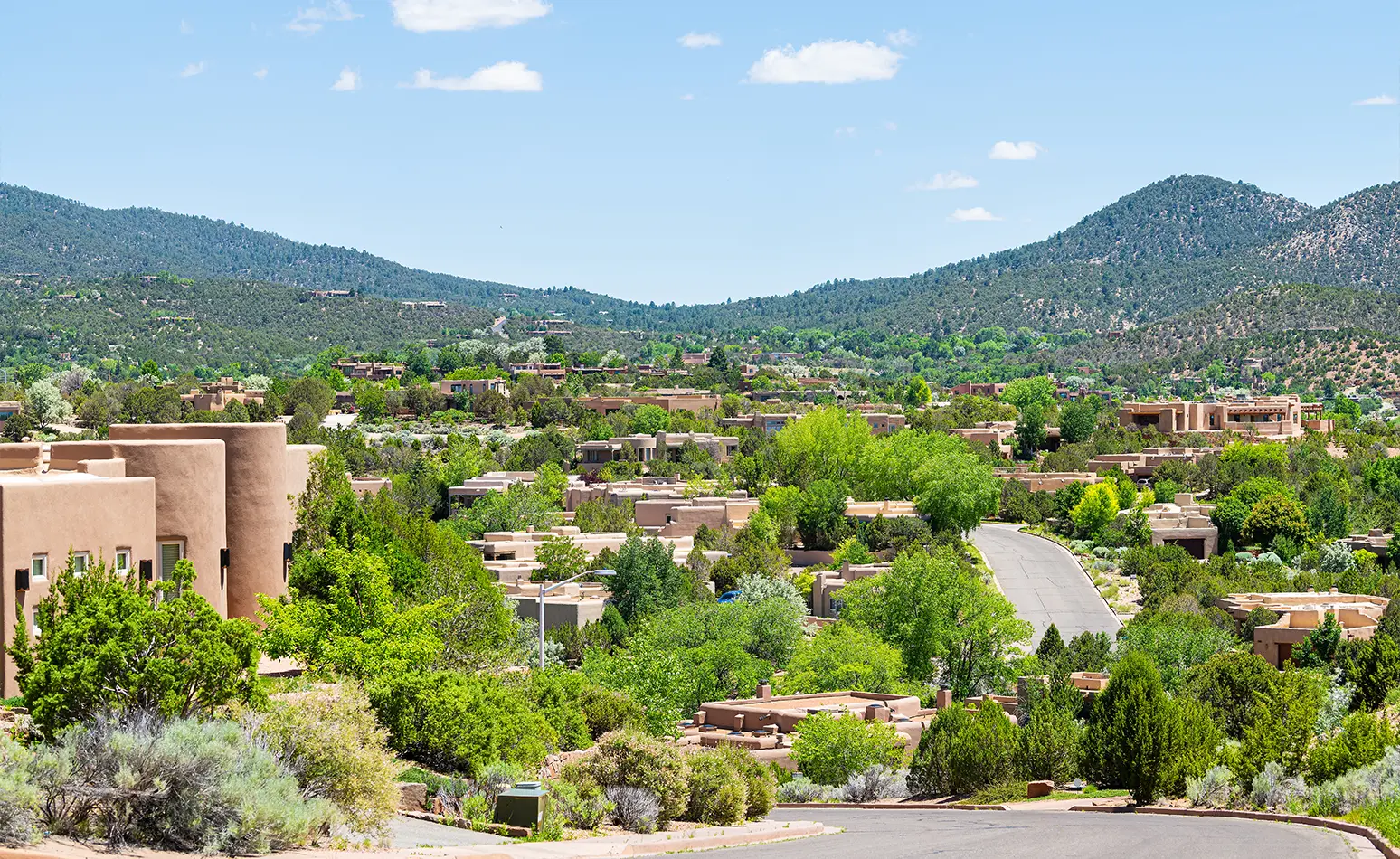 You can find this area of affluent homes north of Downtown Santa Fe and it includes homes in the Bishop’s Lodge area with classic Santa Fe style, those along the Old Taos Highway with a more suburban feel, and Artist–Hyde Park Road itself, with luxury developments with estates tucked into natural landscapes.